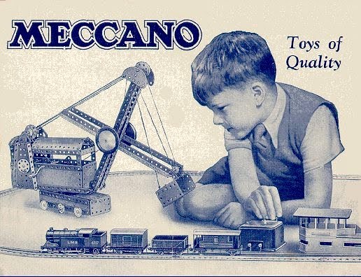 Tout commence en 1898 à Liverpool, dans un petit atelier où Frank Hornby s’amusait à inventer un jeu de construction à base de vis et d’écrous pour ses enfants. Il donne ainsi naissance au système MECCANO breveté en 1901.
