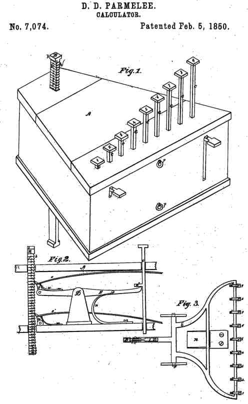 Dubois D. Parmelee publie le premier brevet U.S (#7074). pour une additionneuse à touche.